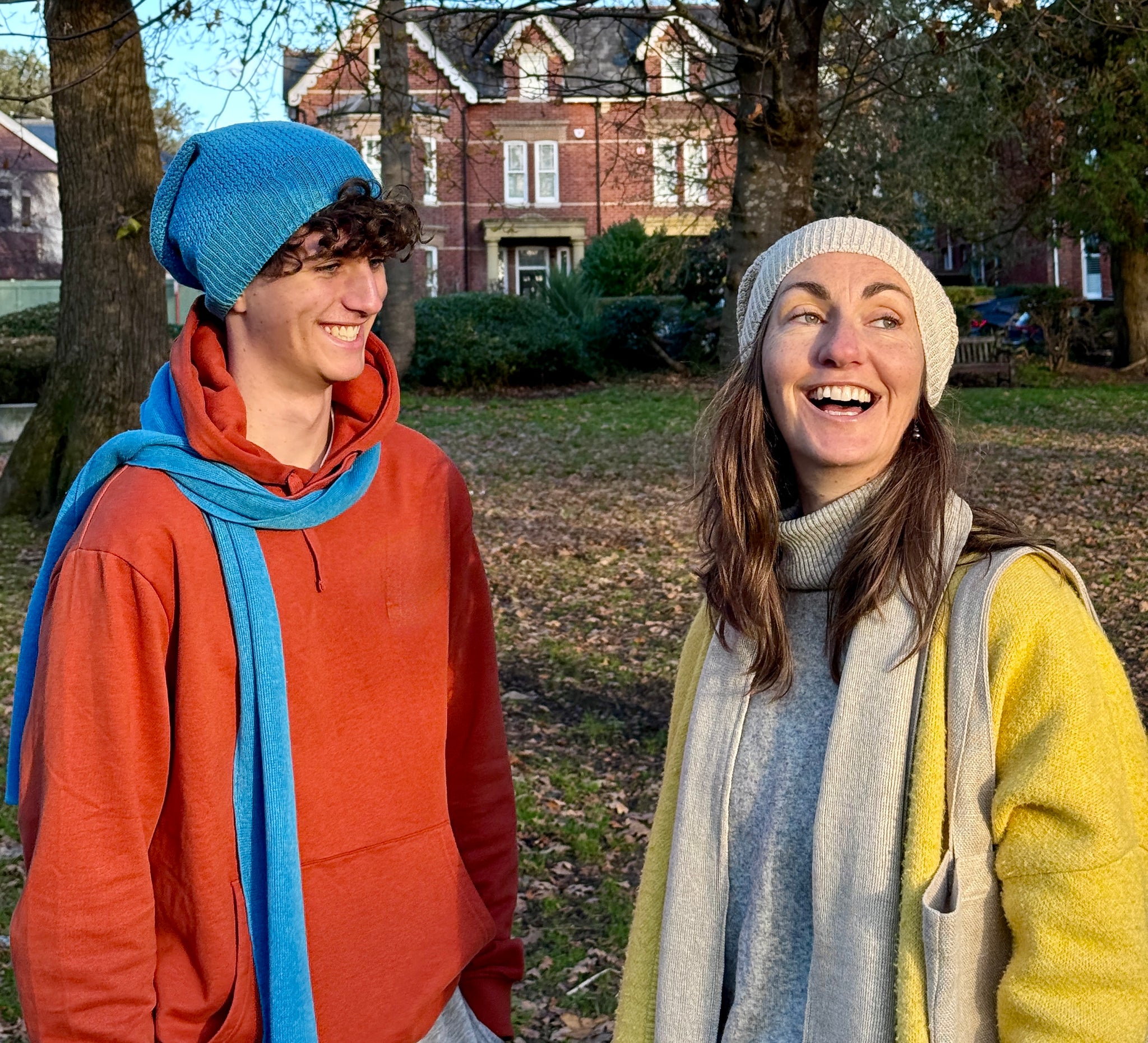 Our Draper's Organic Hemp Slouchies coordinate beautifully with any of our knitted hemp scarf and fingerless glove options - Natural (undyed), Black, Berry Red, Topaz Blue